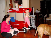 Anyway, not a ton to say... now on to the pictures. By the way, you'll notice that Maddie got a new wagon from Nana and Granddad... yeah... she is obsessed with it. She can climb into it and out of it (sometimes) and loves to pull books into it and read or be pulled around the neighborhood in it.